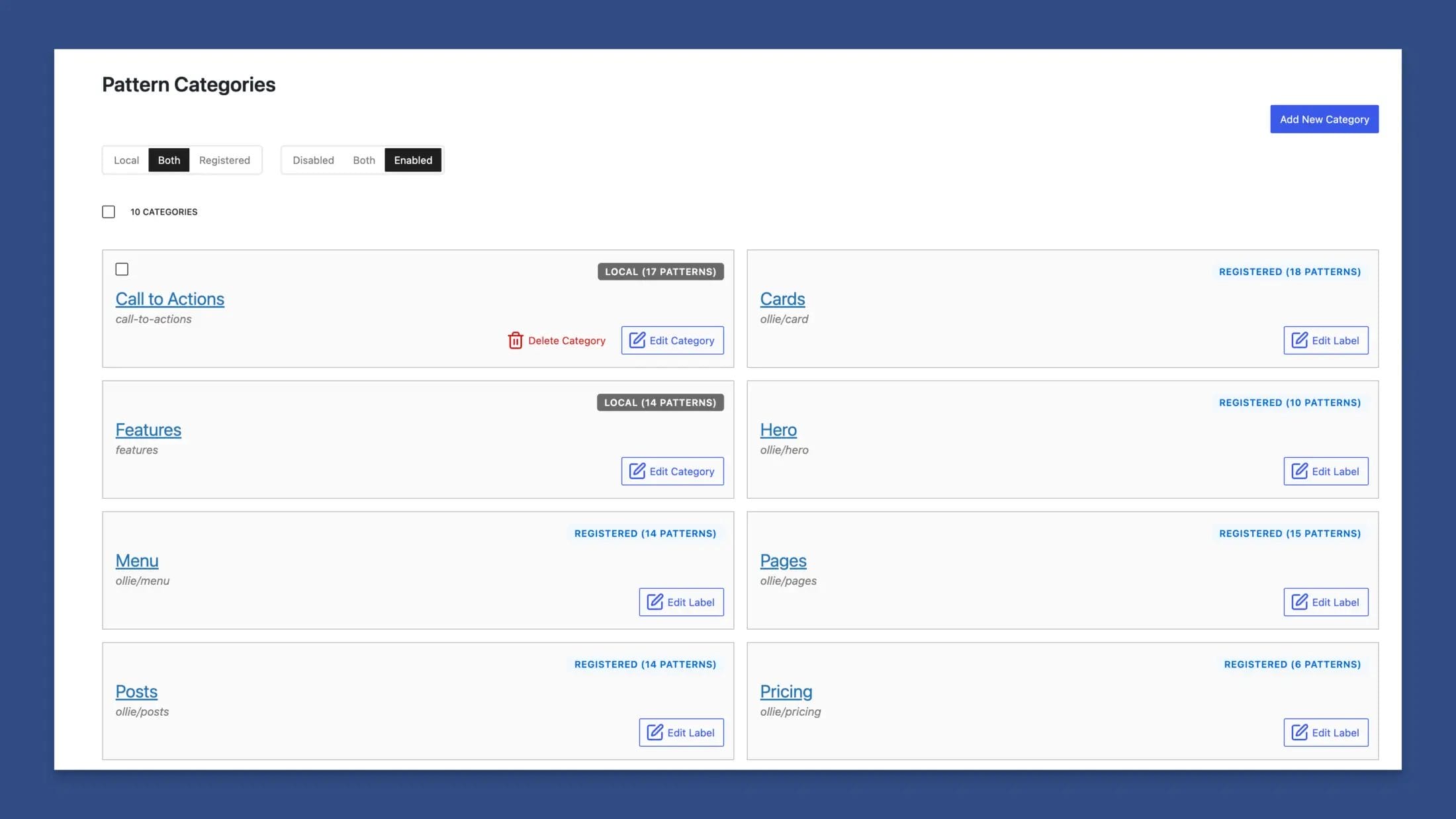 - Quickly edit local and registered category labels and slugs.