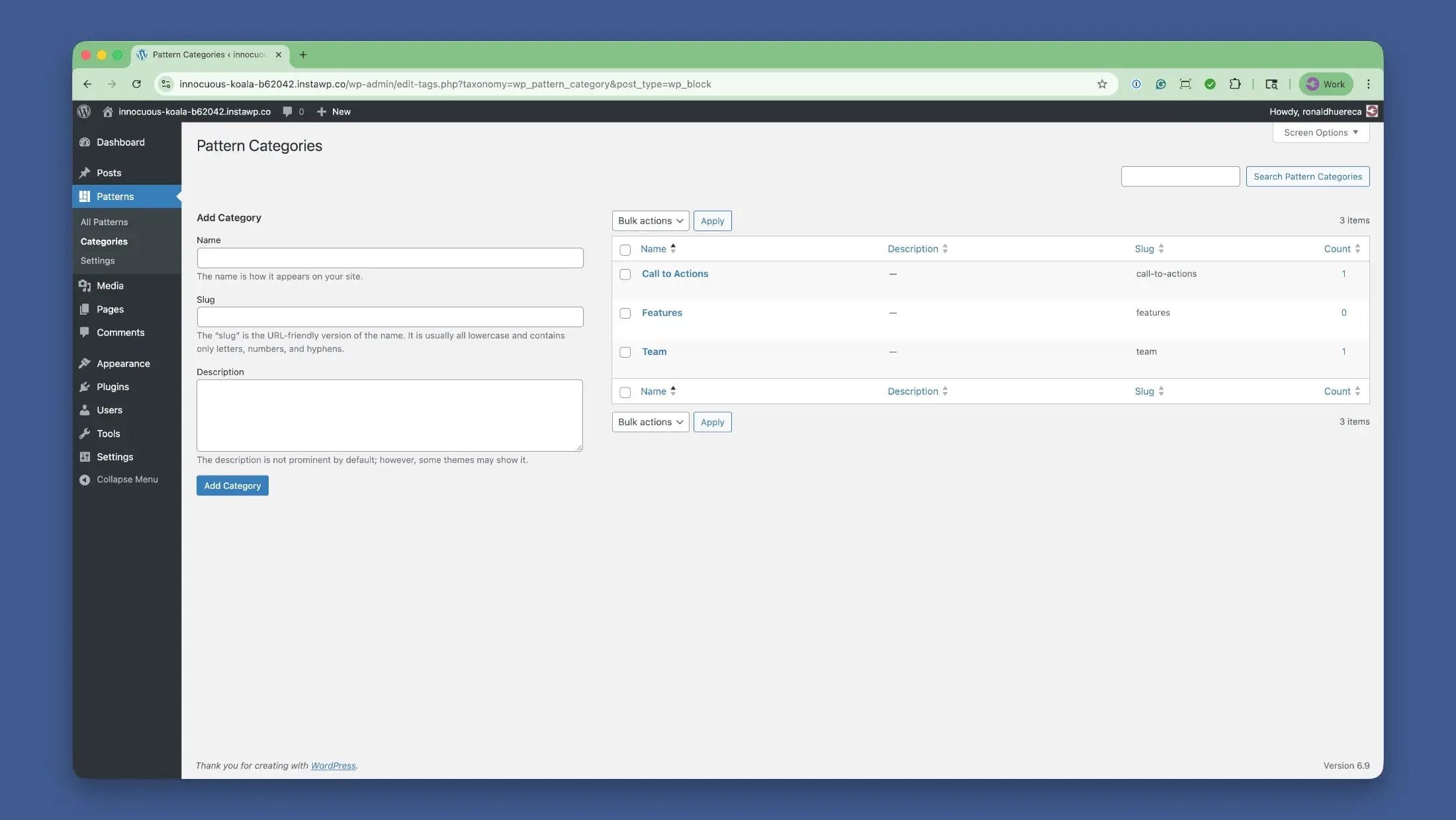 The existing categories view for Patterns left a lot to be desired. You could only see local categories.