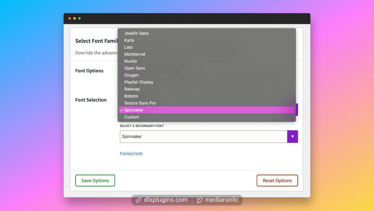 QuotesDLX tries to be lightweight when it comes to fonts, which means that the fonts are pre-selected and hosted and served locally (no external communication with Google).