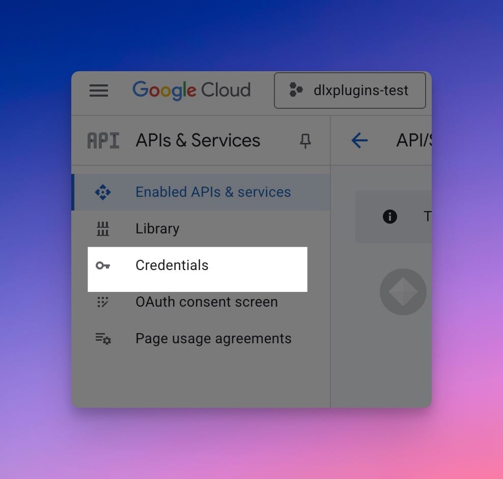 While still on the reCAPTCHA Enterprise configuration screen, click on Credentials in the left sidebar.