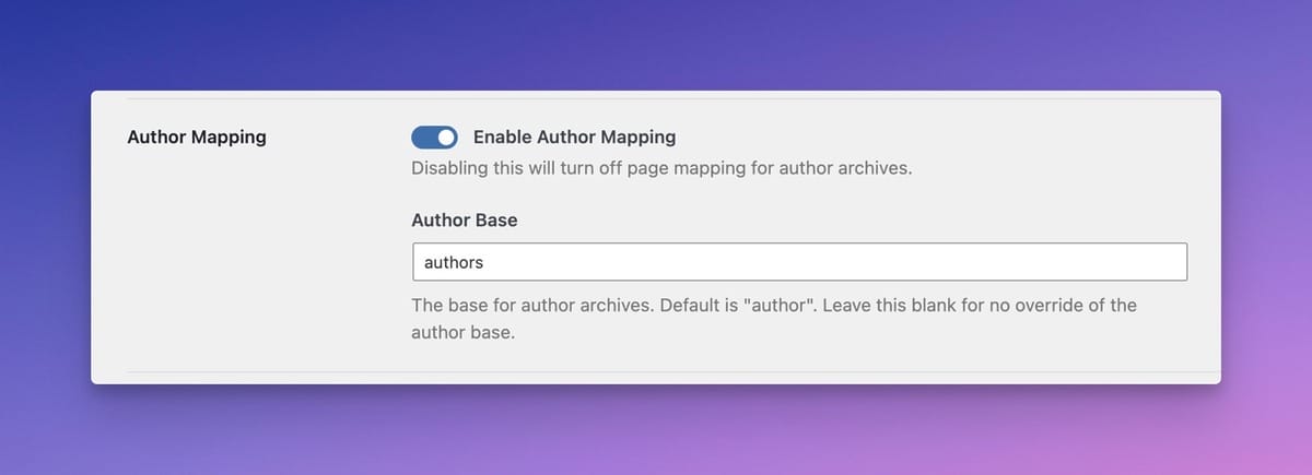 The author’s slug is usually set in stone upon registration, but Archive Pages Pro lets you change it when needed. Life happens, so it’s nice to know you can change an author’s slug at any time.