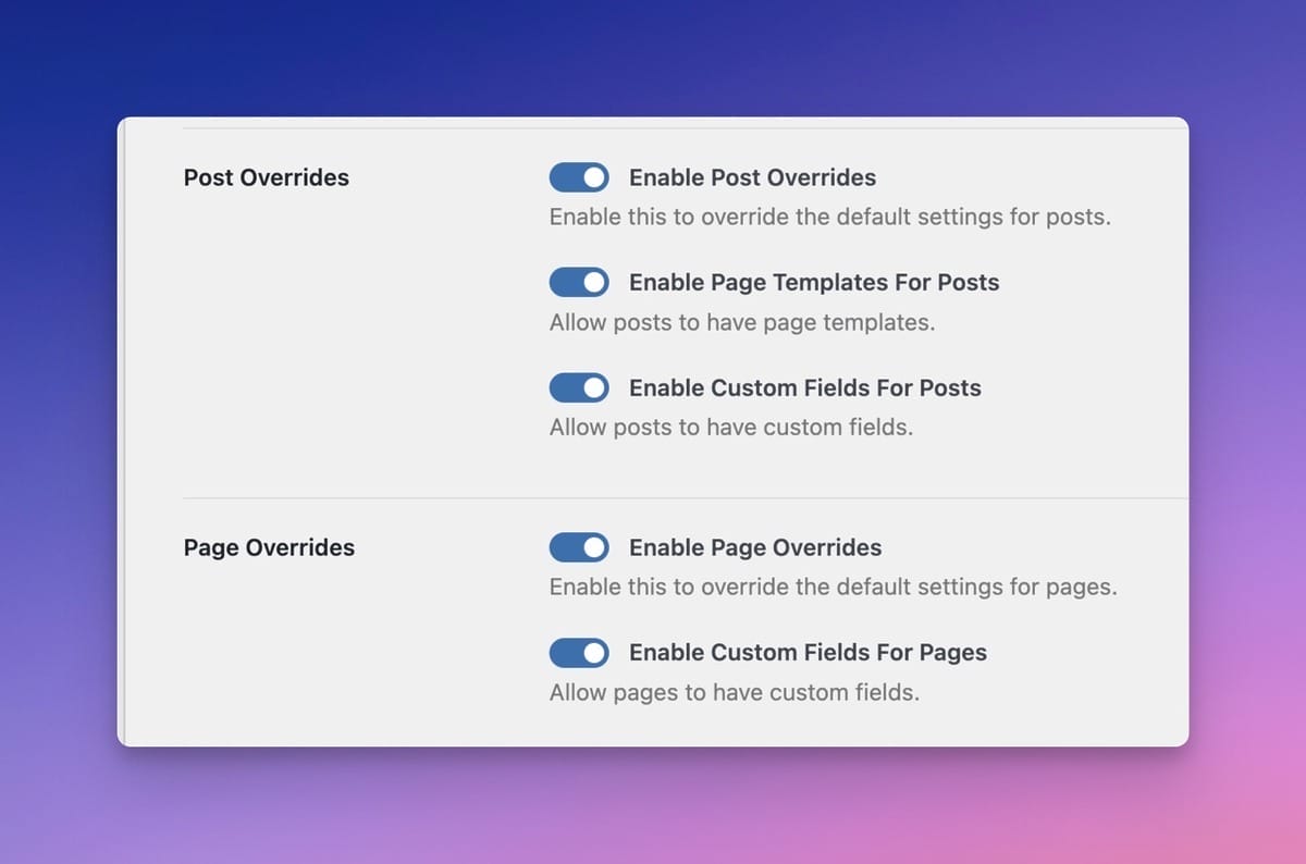 Enable Per Post Type Overrides