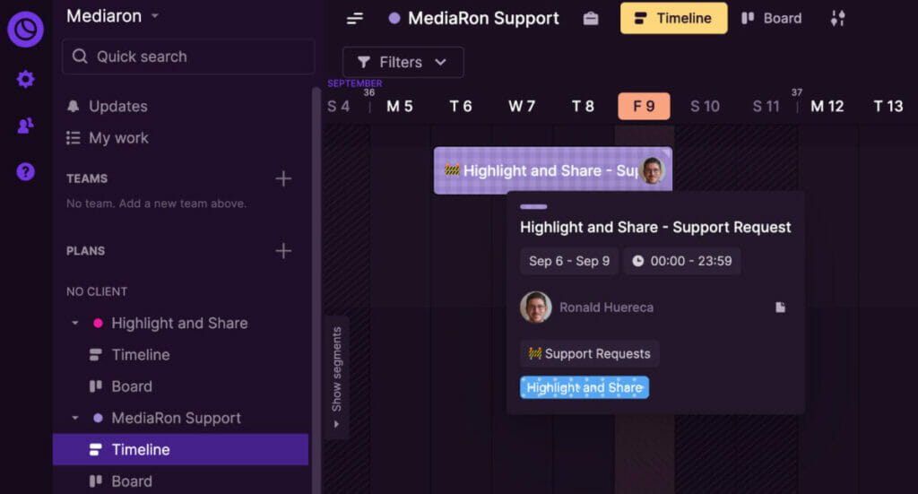 Toggl Plan is a great project management tool geared towards freelancers and teams who need a light-weight and easy-to-use task management solution.