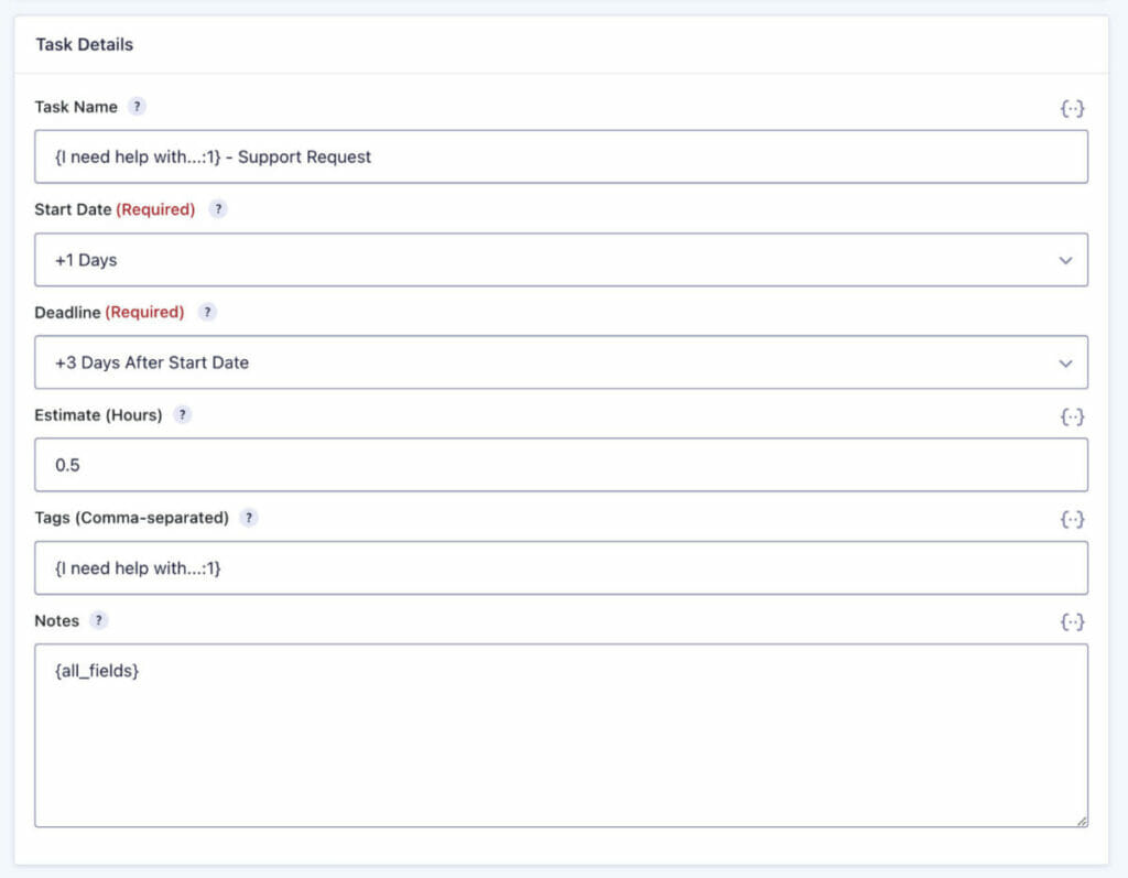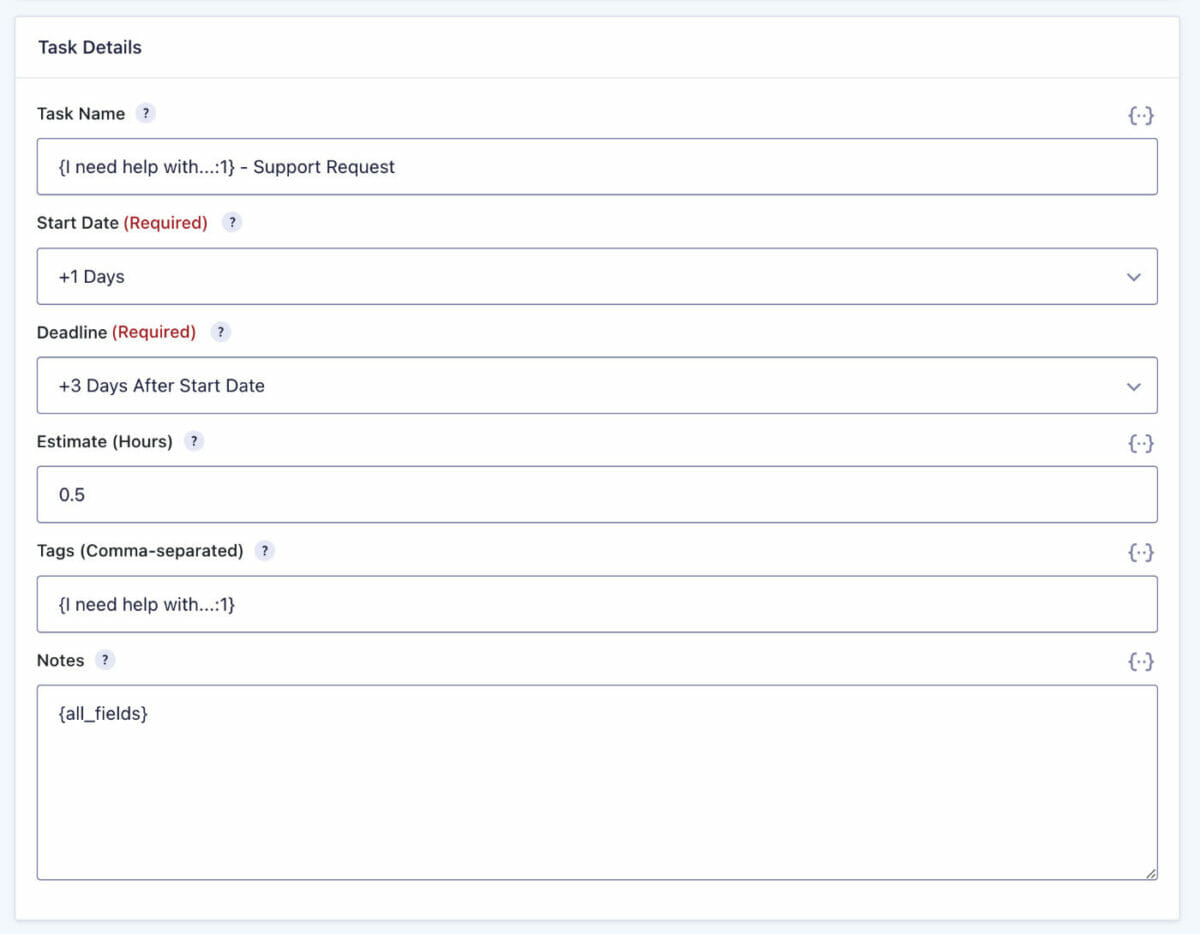 Use merge tags to create the task’s details