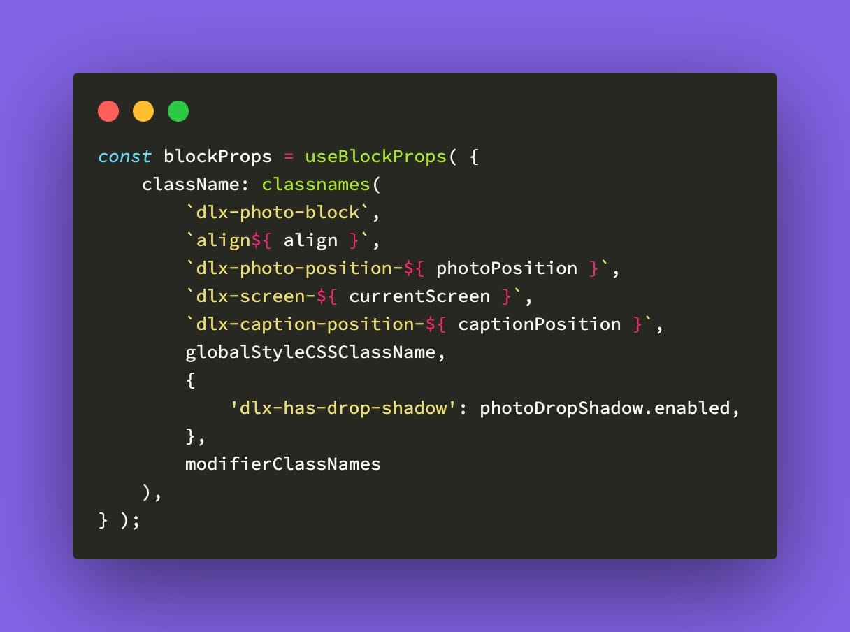 import classnames from 'classnames';Code language: JavaScript (javascript)In this example, I’m using classnames to format my CSS classes and passing modiferClassNames and adding it to useBlockProps.