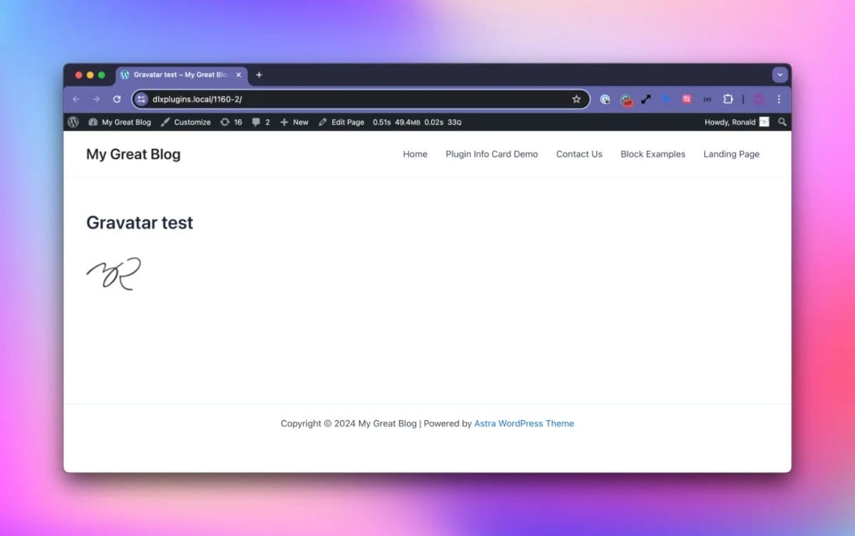 We now have a Gravatar block we can add to a block-enabled post, have it remember the Gravatar email, and output the avatar to the frontend.