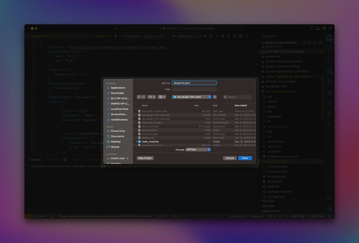 Let’s dive into how to set up a blueprint.json file using my plugin WP Plugin Info Card as an example.